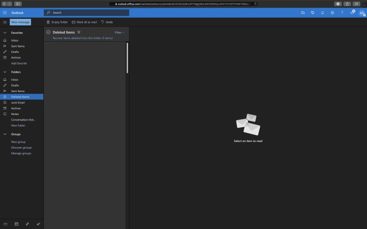 Most hackers want to be undetected as long as possible. A way to be undetected is to delete all incoming e-mails using a rule and remove them from the deleted items. Luckily, the recovery of these items is possible: Open the user’s inbox, go to Deleted Items, and click Recover items deleted from this folder.