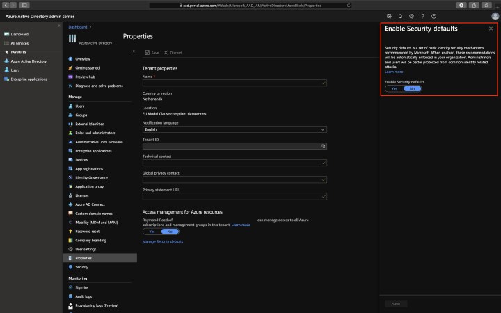 Note: Azure AD Security Defaults are not suitable for complex security requirements. It is either turned on or turned off. If you want to make decisions based on a condition, Conditional Access is the way to go.