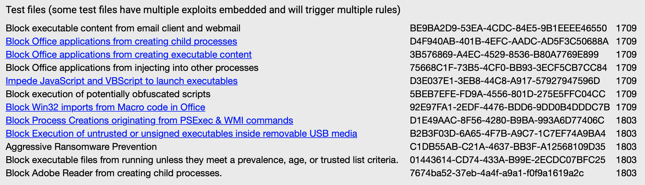 There is a Microsoft link that contains some Attack Surface Reduction examples, which you can download. There is a total of six samples I used to test the Attack Surface Reduction rules.