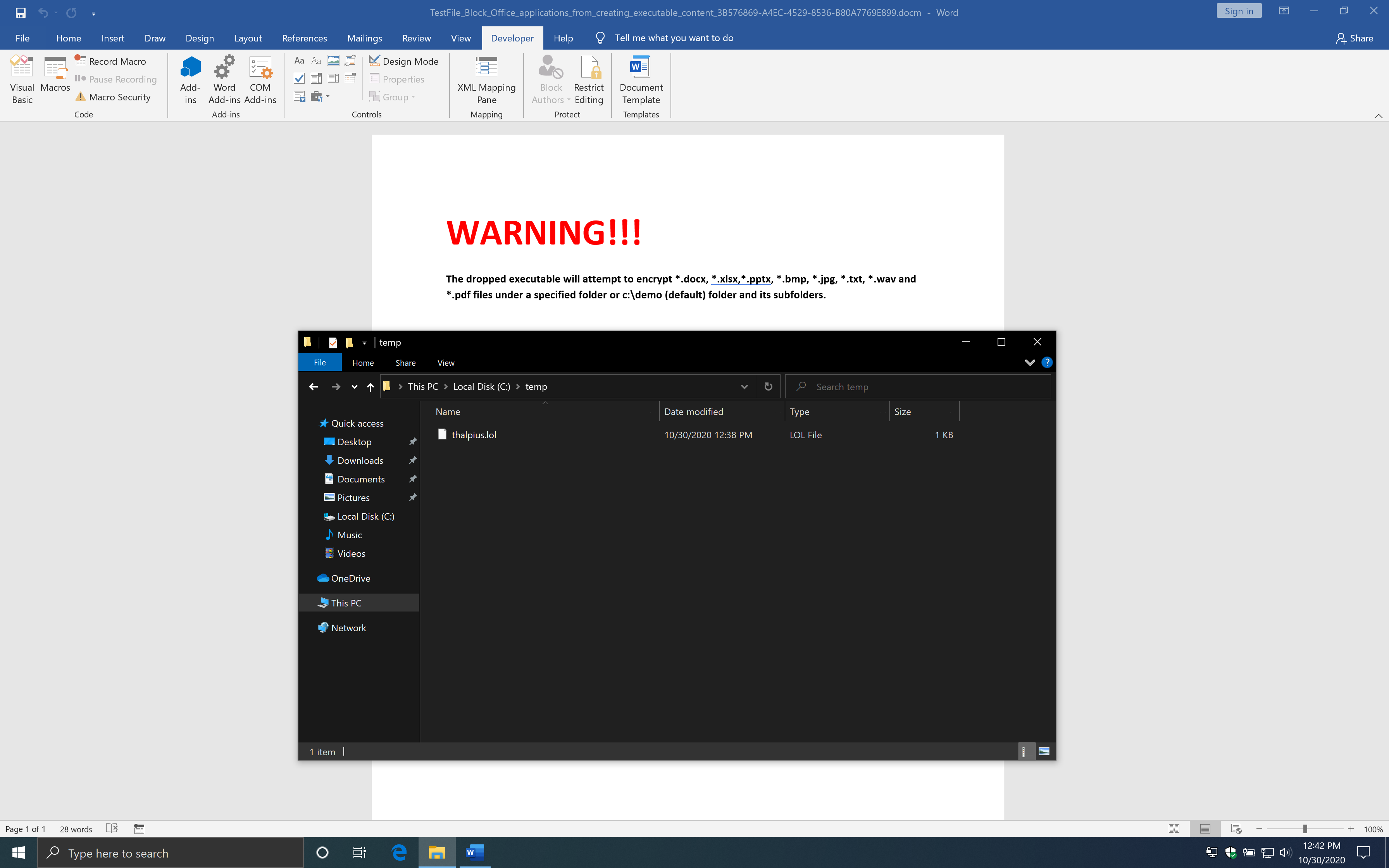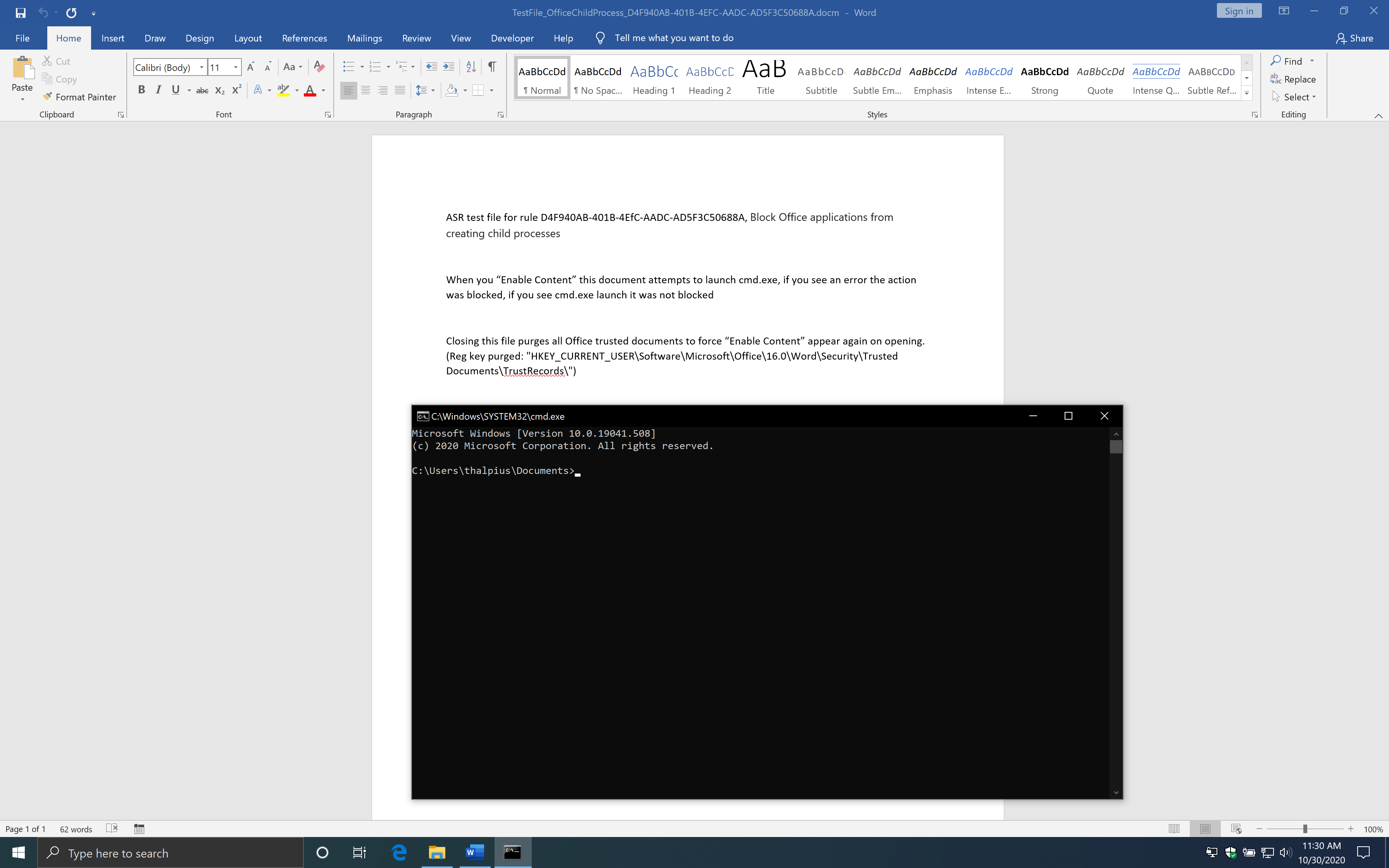As you can see, this works just fine, and you bypass the Attack Surface Reduction rule.