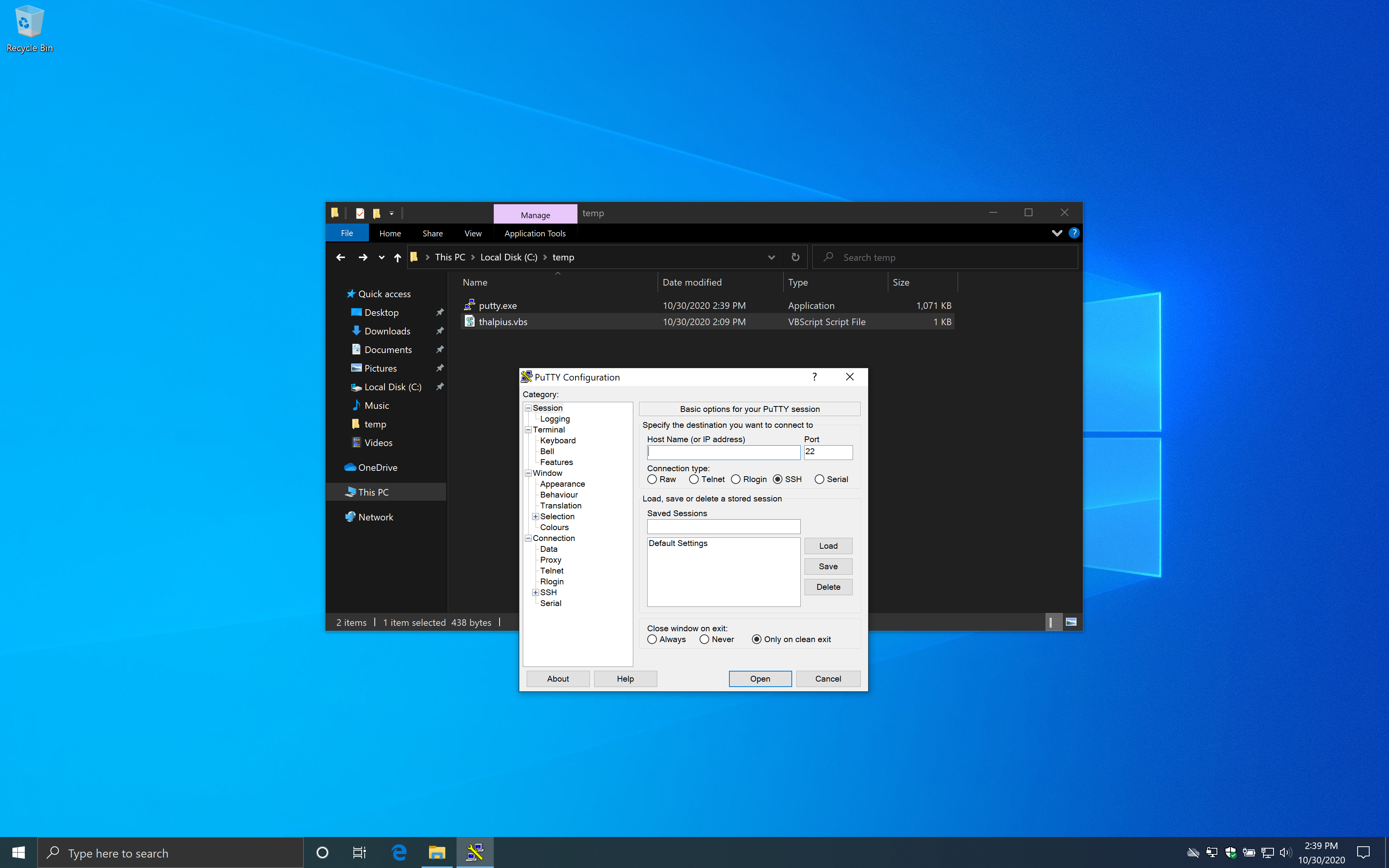 objShell.Exec("c:\temp\putty.exe")