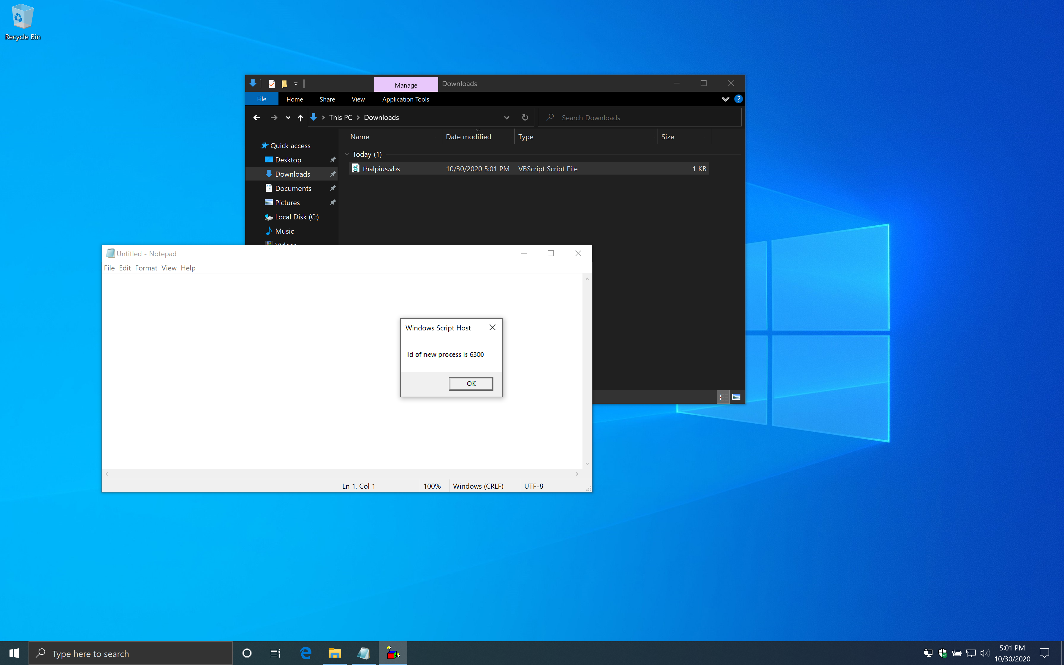 If you start the Visual Basic Script, it starts notepad.