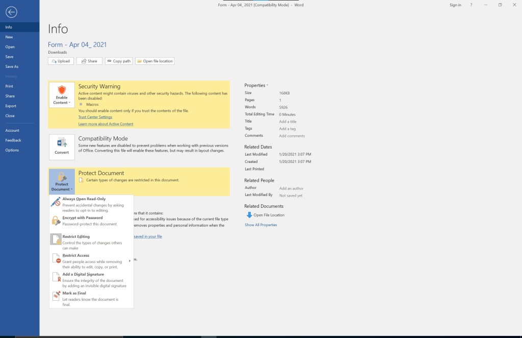 In this example, I will use a real-world example found on the internet. The file is a Microsoft Word document named “Form – Apr 04_2021.doc”: