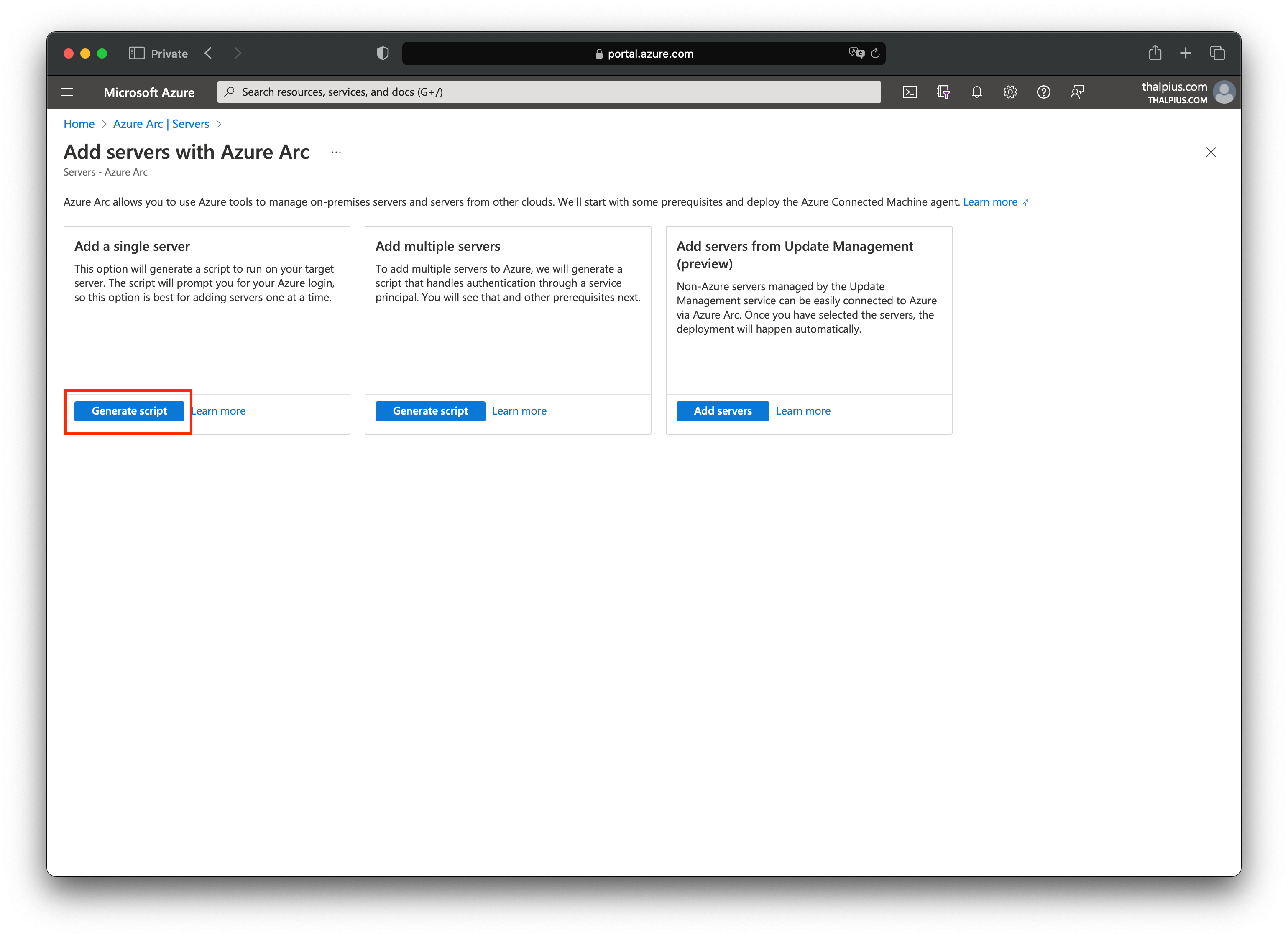 In my case, I am running the server in an on-premises environment, so I installed the Azure Monitor Agent using a script that I downloaded from the Azure Arc blade: