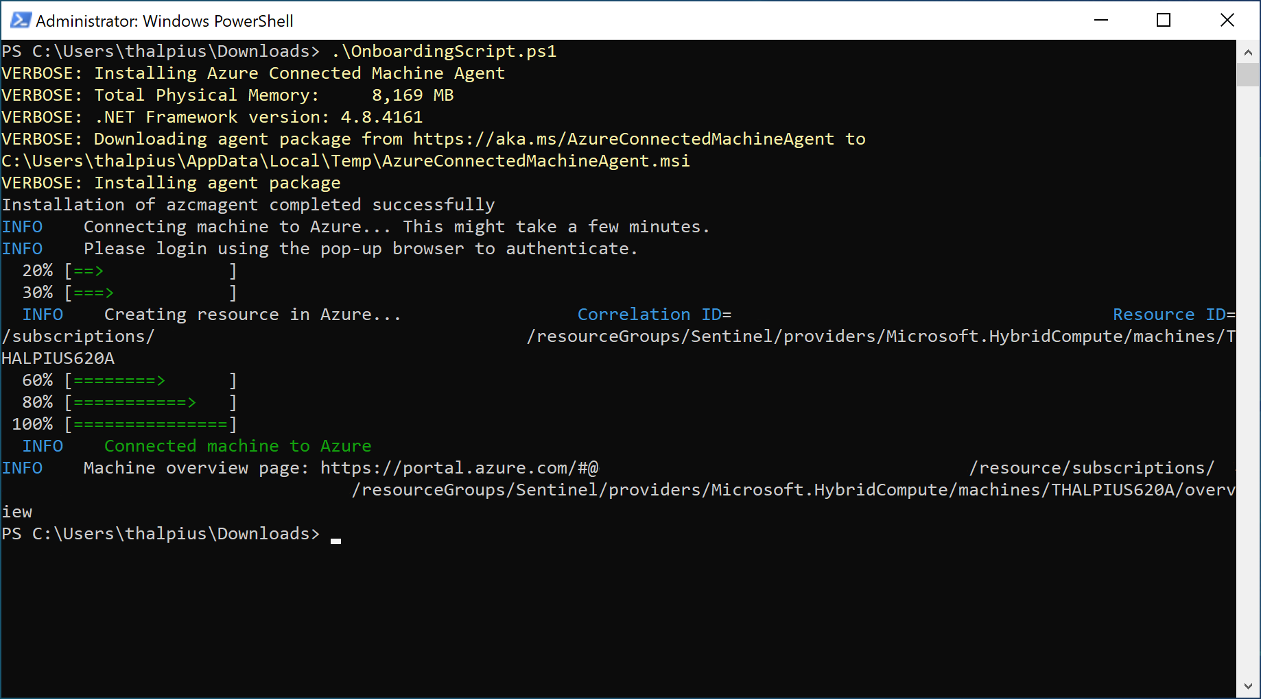 The installation is straightforward. Execute the script to install the agent using PowerShell. The script asks you to authenticate to the correct tenant during the installation: