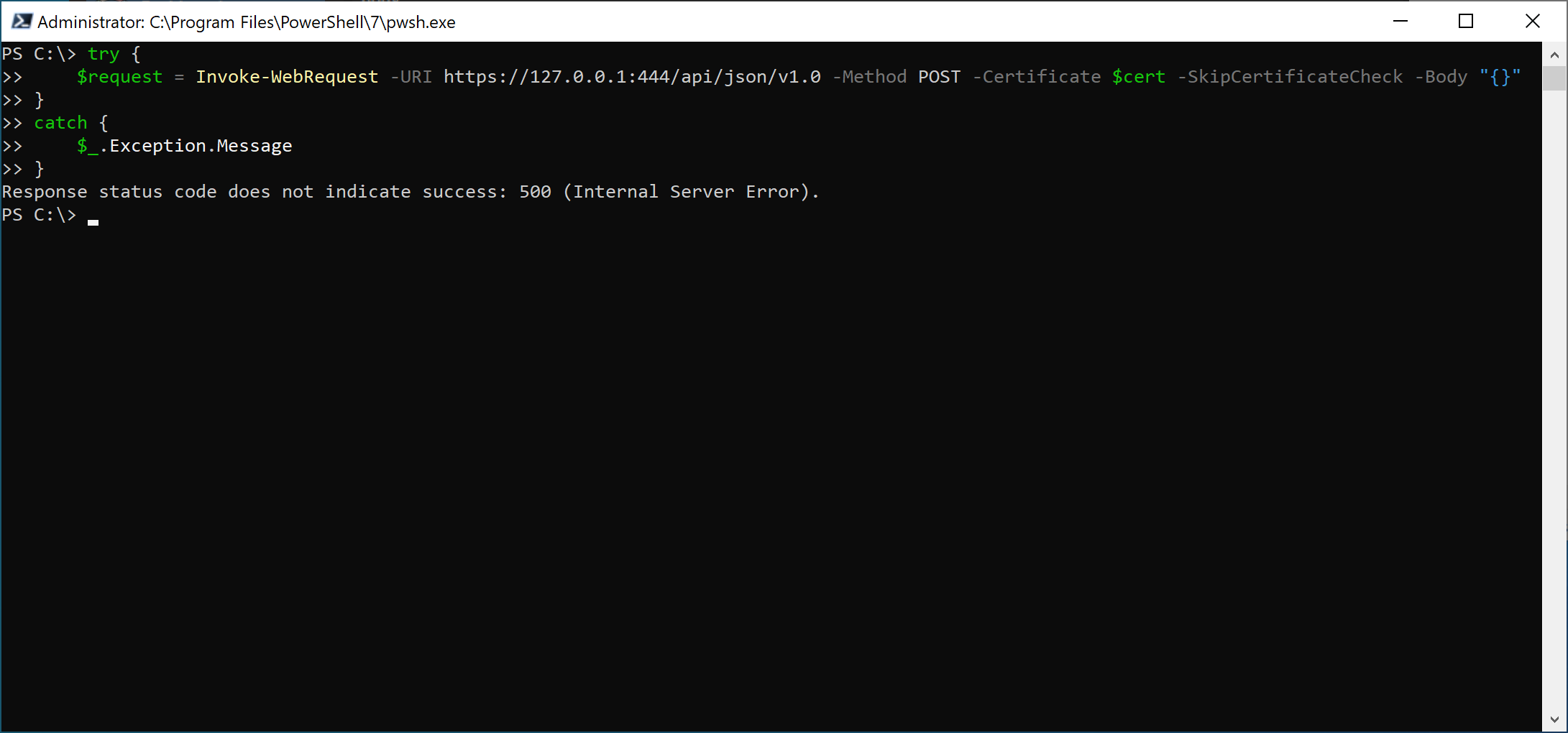 The requested source does not support the HTTP GET method. Fair enough. Let us try a POST request with an empty body, then.
