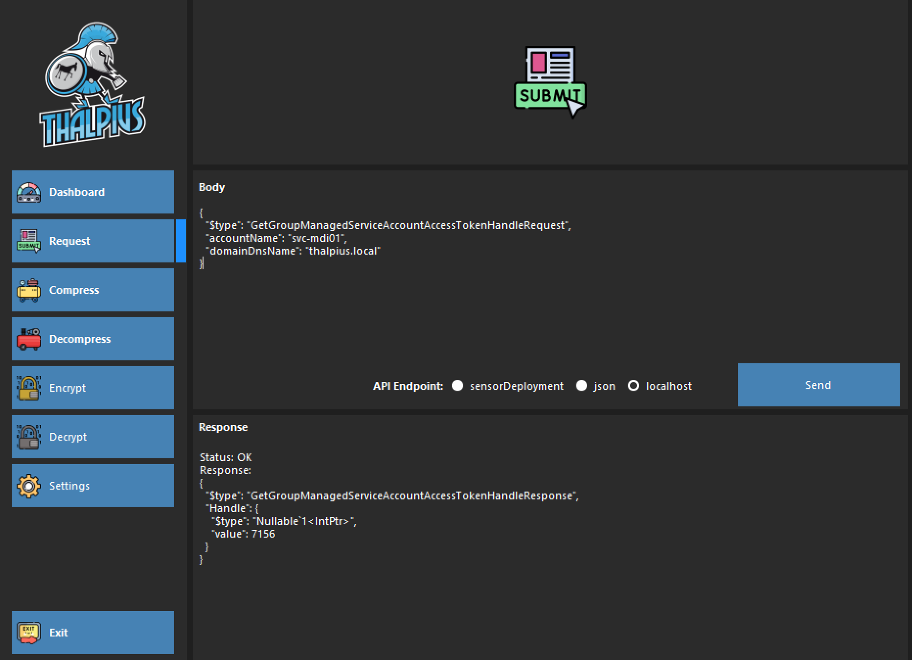 I could not get it to work in PowerShell. Still, in my previous blog post, I needed to send the JSON object using compression to the API endpoint. So, I used my own Microsoft Defender for Identity API Fiddler to send the JSON object to localhost, and I got some results.