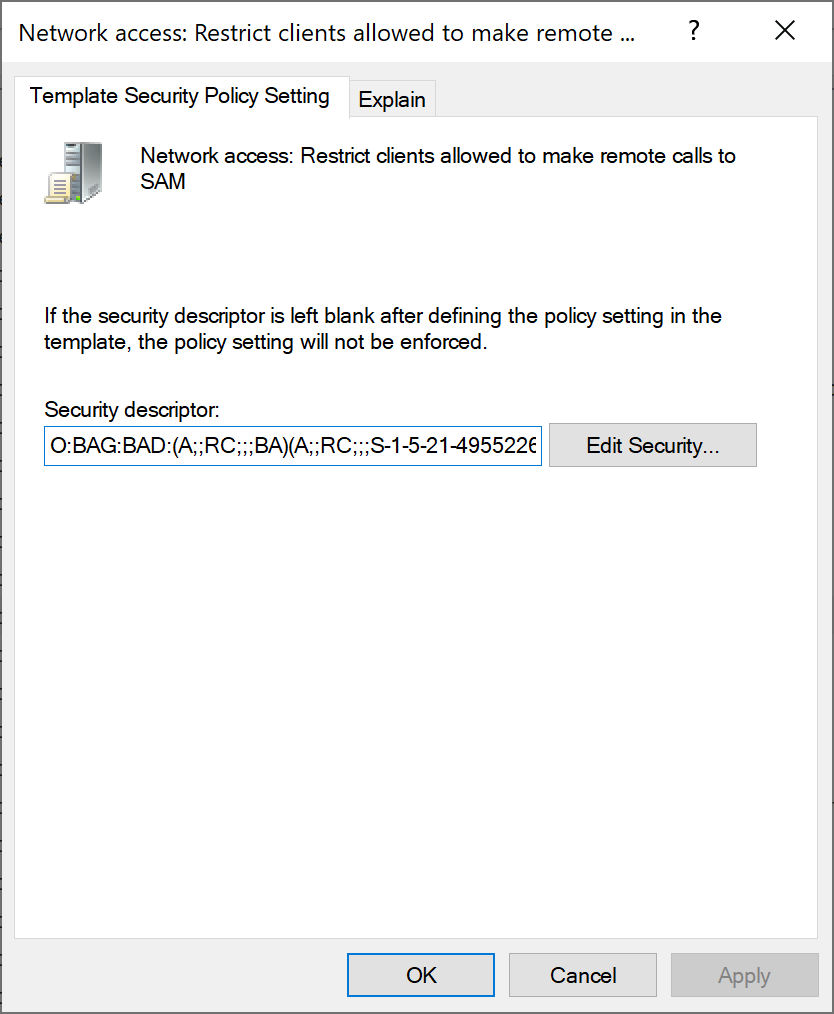 The permissions set in the policy is “Allow,” but what exactly can the account do on ALL servers and ALL clients? We need to understand what the Security Account Manager is to find out. The Security Account Manager, or SAM, is a database file that stores users’ passwords. So, giving any account any permissions on this file sounds scary. When you can access the database remotely, it even gets scarier.