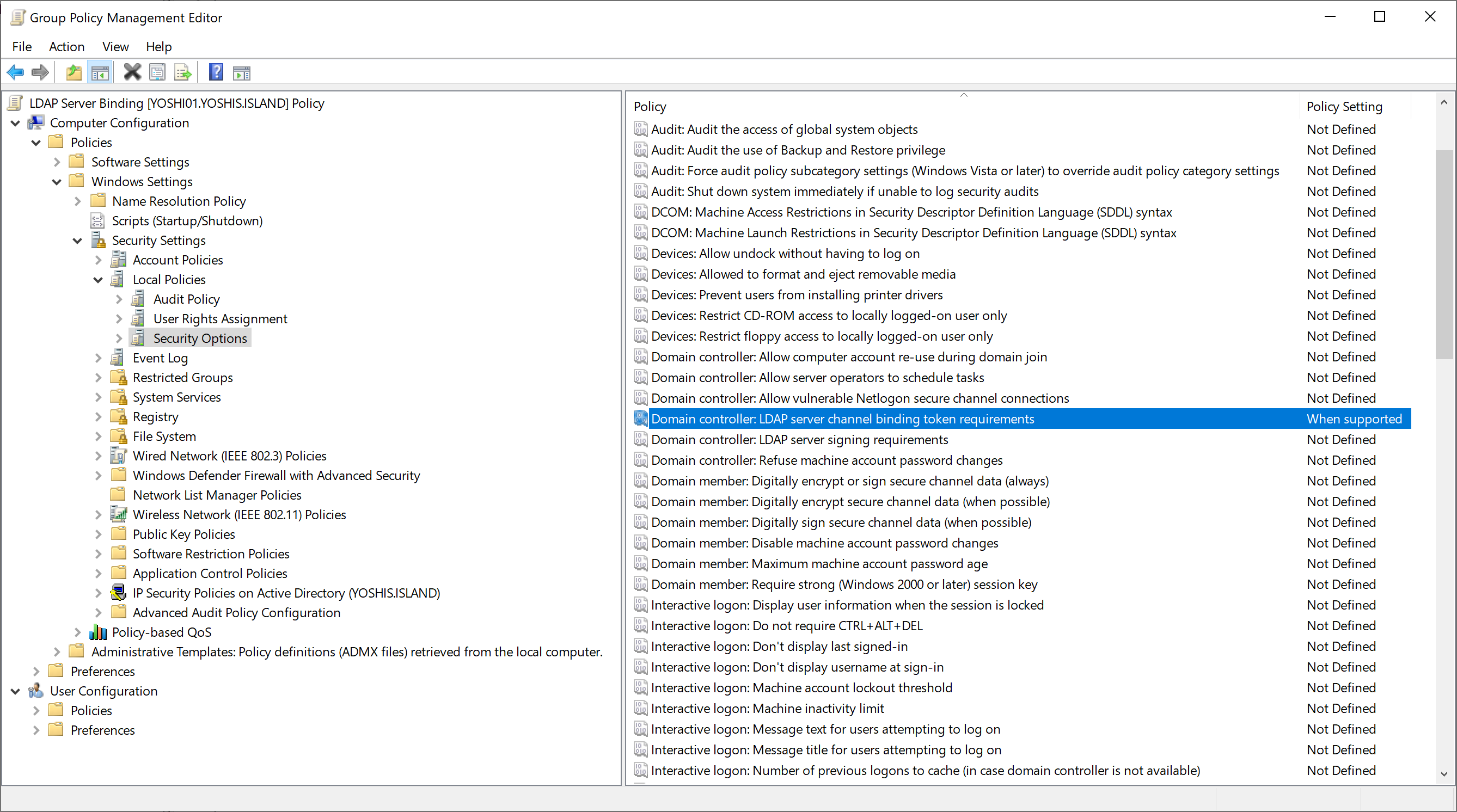 You only want to see the insecure binds to the Domain Controller, but we can authenticate clients over TLS/SSL connections if supported using the following policy.